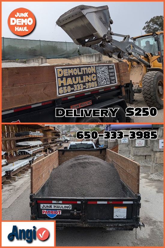 We picked up 5 yd of black fill sand in SSF and delivered it to SF. We later unloded the sand to the backyard (extra charge). |